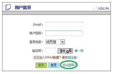 输入DRAA用户名和密码登录,如果忘记密码,请点击“找回密码”。