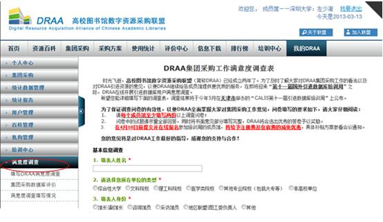 登录后进入“我的DRAA”下“满意度调查”,点击“填写DRAA满意度调查”。
