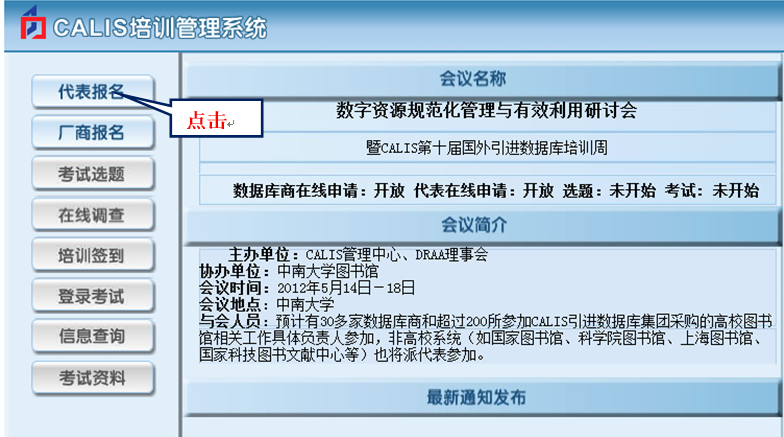 请登录培训管理系统(http://dbtraining.calis.edu.cn/),点击代表报名,进行网上报名。