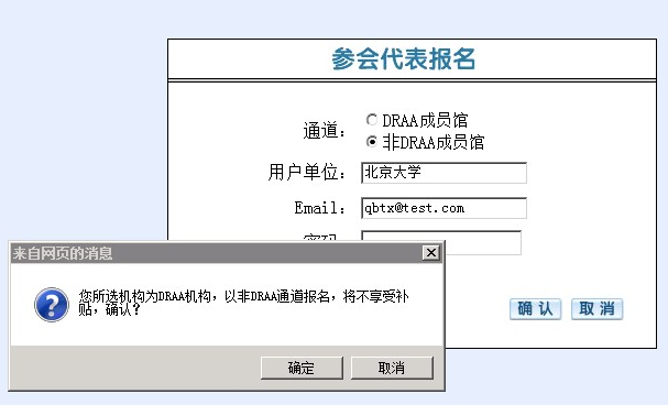 如果已是DRAA成员馆选择“非DRAA成员馆”登录时系统会弹出提示,一旦 “确认”走非DRAA报名通道,本届培训周将不享受任何补贴!后续查询、变更、打印报到单,都请以“非DRAA成员馆”通道登录。