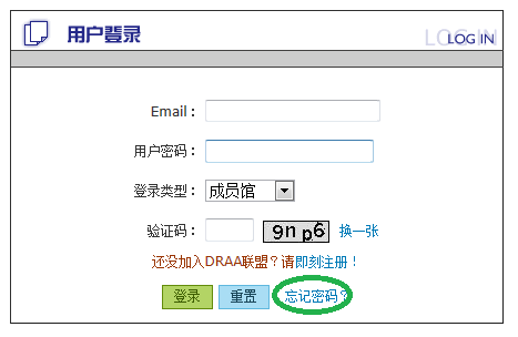 输入DRAA用户名和密码登录,如果忘记密码,请点击“找回密码”