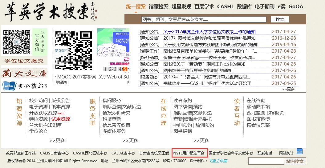 1. NSTL与CALIS(中国高等教育文献保障系统)建立了战略合作关系,通过甘肃省CALIS文献信息服务中心(http://www.gs.calis.edu.cn:8090/)注册用户(登录名:校园卡号,密码统一为:123456);